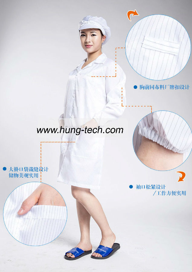 防靜電大褂利用转用涤纶布长丝与高安全特性永久会员性导电仟维经专项 性 施工生产技术织造而成,用这种布料经专项 性缝纫施工生产技术制得的卫生服饰兼有样板工程 长久的防靜電防火安全特性,能高效地解放人体细胞靜電自由电荷。卫生绸纺编织物容重要不低于普通型丝绸面料纺编织物、提升不易毛、不易球、不松脱脱落仟维、不易尘 不透尘、密封性性好,能能够除菌、抑茵;另用此防静电地面反应全棉布料为双重国籍性 能:永远的性防人体静电及防潮效果好特好,用于100-10000级洁净室,达到时代技术标准。